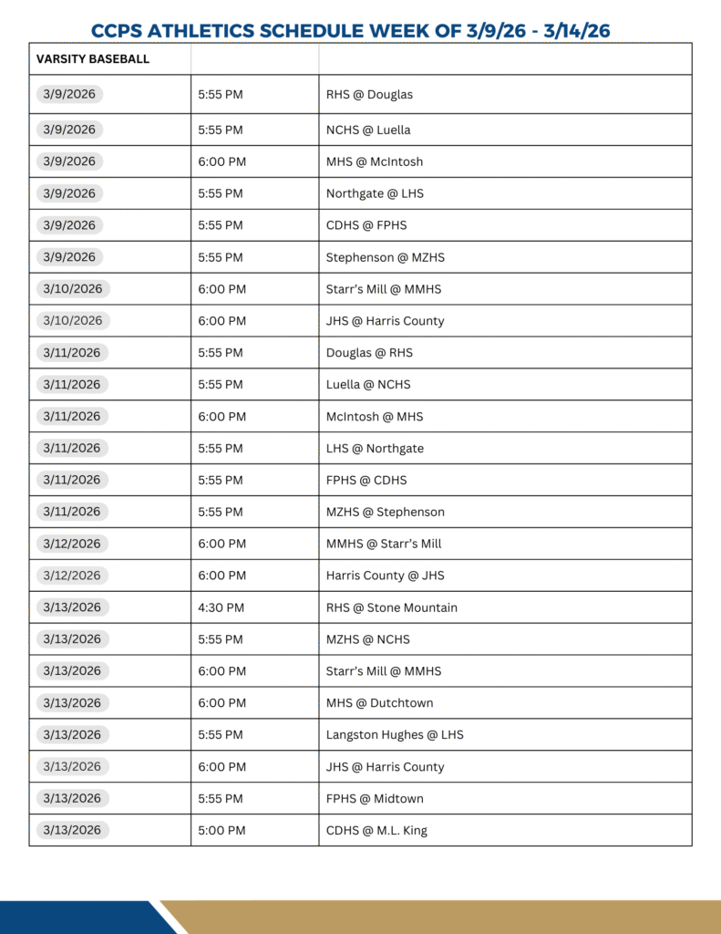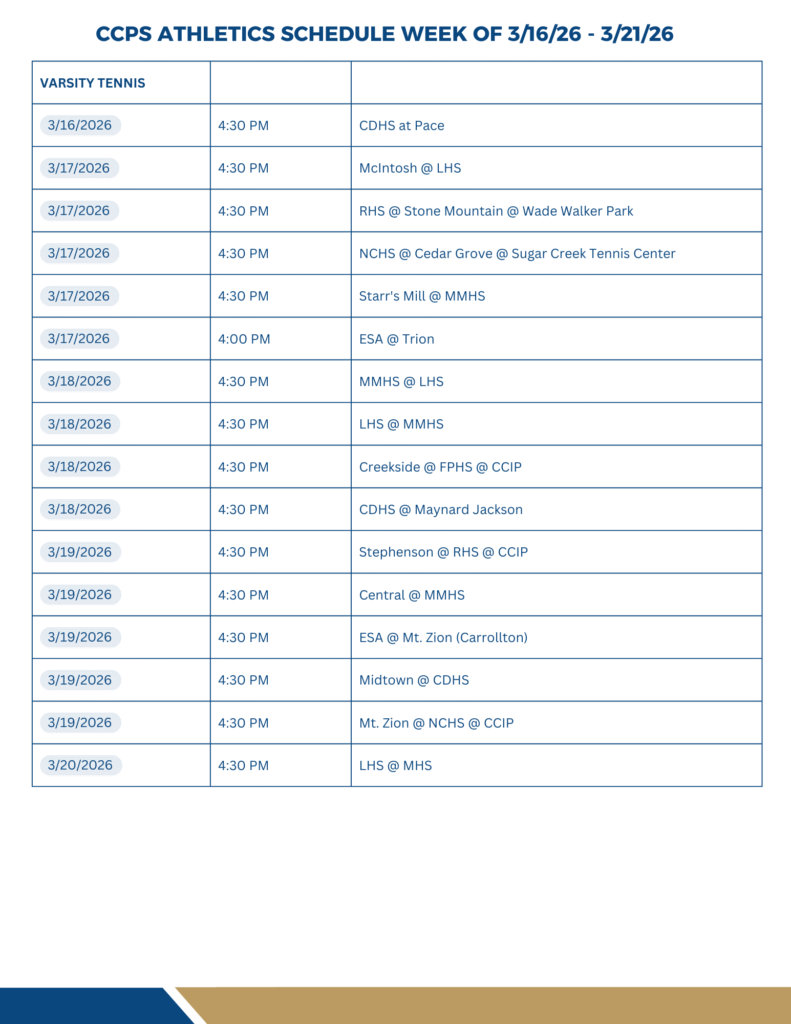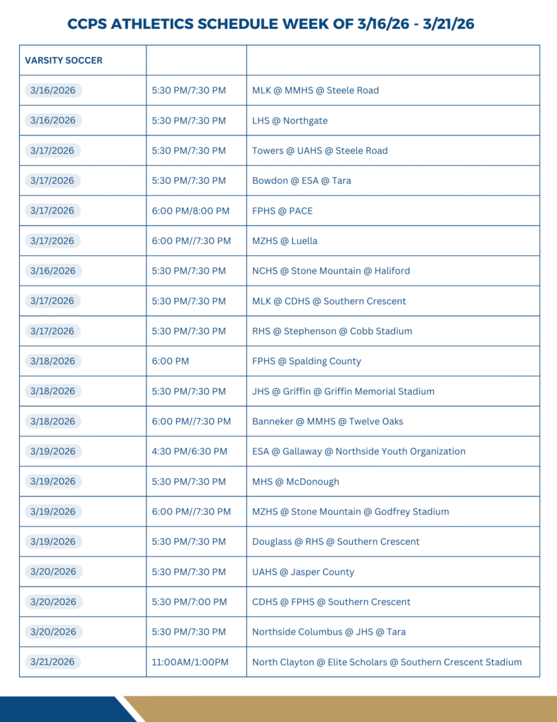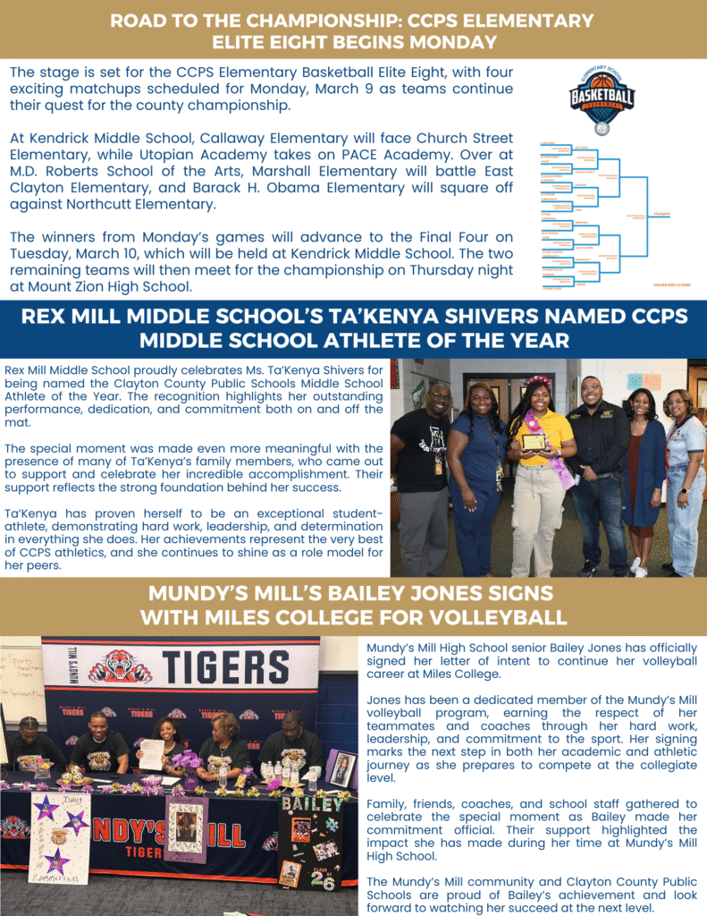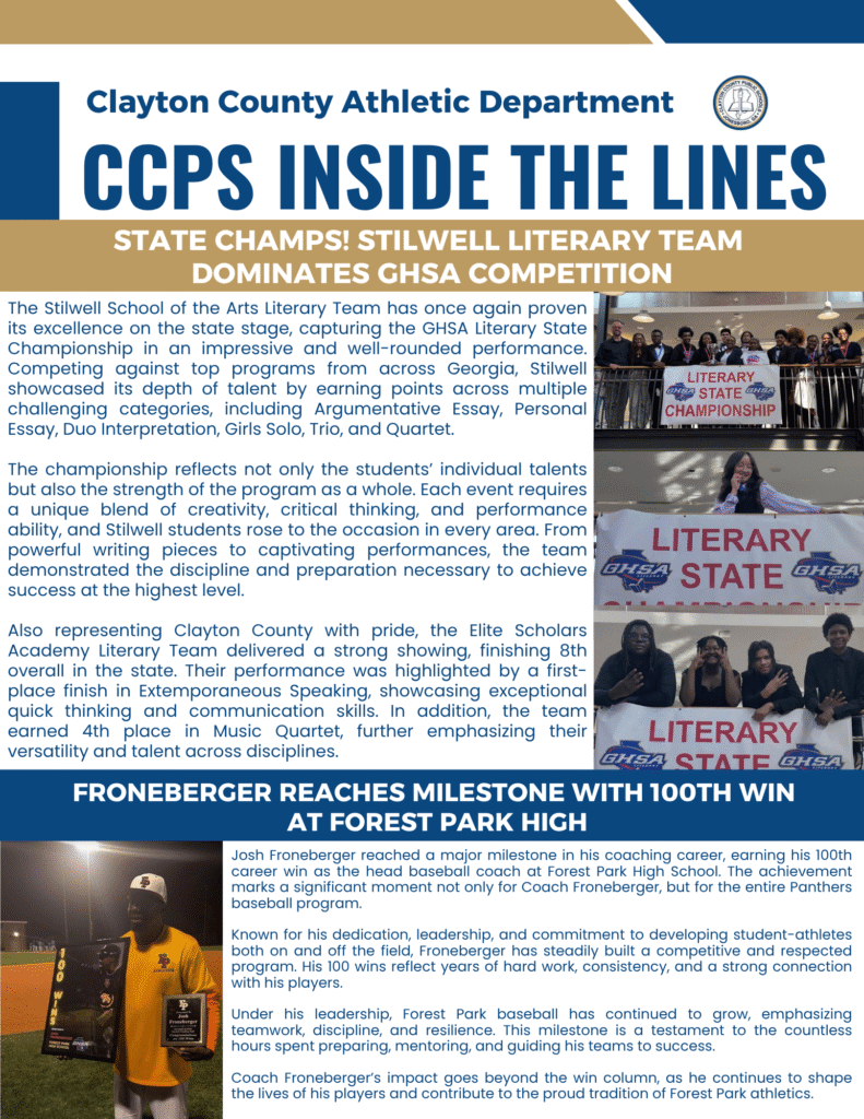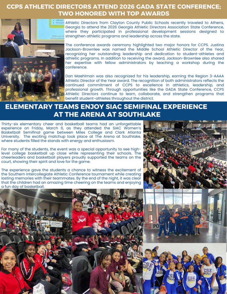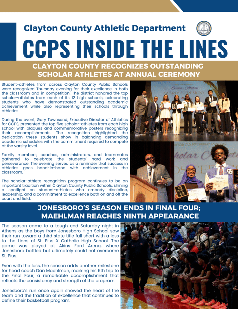 The Clayton County Public School District Department of Athletics is committed to excellence in academics and athletics. We are dedicated to the student-athletic experience, aiming to instill honor and integrity, adhere to the rules of competition and sportsmanship, and produce champions in sports and in life.