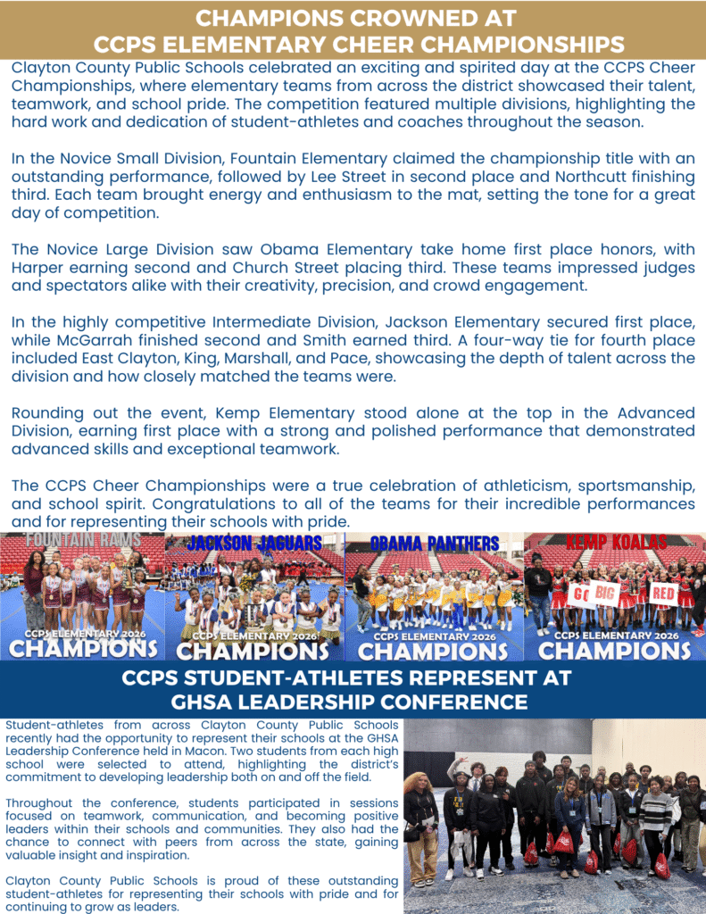 Two student-athletes from each high school proudly represented CCPS Athletics at the GHSA Leadership Conference in Macon, Georgia! Thank you for representing CCPS with pride, leadership, and excellence. We are proud of the way you carried yourselves and showcased the very best of our district. ...